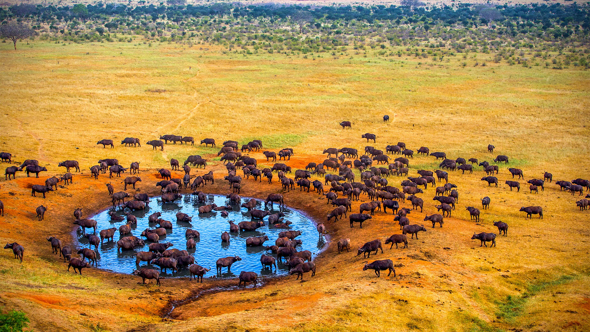 Vi kører på gamedrive om eftermiddagen for at spotte vilde dyr og besøger Mzima Springs, hvor der springer 280.000 liter naturligt kildevand i minuttet. Fra en udsigtspost under vandoverfladen kan vi nyde synet af flodheste og krokodiller i det klare vand.